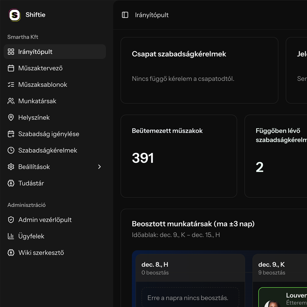 - Role-based layout: leaders get charts, employees see their upcoming shifts